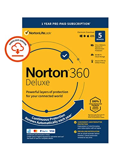Norton 360 Deluxe 2021, Antivirus software for 5 Devices and 1-year subscription with automatic renewal, Includes Secure VPN and Password Manager, ...