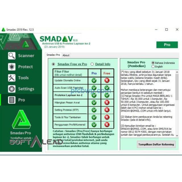 Download Smadav Antivirus for Windows 10 Free (2022) Smadav Antivirus application is free to download and offers easy-to-install, easy-to-use, secure, and reliable Anti-Virus applications. This application's primary functions are comprehensive and go beyond the features offered by others that can be considered as its rivals. Smadav Antivirus for PC - fast, reliable, and robust by Zainuddin Nafarin. Smadav Antivirus 2021 - Situs Resmi (Official) Smadav + Perubahan tema tampilan Smadav 2019. Smadav 2018 Rev. 11.8 - 12.4: + Peningkatan fitur whitelist dengan database baru yang berisi daftar 98.051 aplikasi aman, + Perubahan tema tampilan Smadav 2018, + Perubahan ketentuan pembelian lisensi baru Smadav Pro dari lifetime menjadi 1-tahun, + Peningkatan kemampuan pendeteksian dan pembersihan virus ... Smadav Pro 2019 Free Download - Get Into PC Smadav Pro 2019 Free Download Click on below button to start Smadav Pro 2019 Free Download. This is complete offline installer and standalone setup for Smadav Pro 2019. This would be compatible with both 32 bit and 64 bit windows. Before Installing Software You Must Watch This Installation Guide Video Download Full Setup 2019 v13.0.1 Password 123 Smadav 2022 Pro Free Download For Pc Free Antivirus ... Smadav 2022 Pro Free Download For Pc - Smadav 2020 pro is available as a free download from our software library. The main element factor of any. Anti Virus Avast Premier 2019 Durasi 20 Tahun Bonus Smadav Pro Ori Shopee Indonesia from cf.shopee.co.id An imposing security application that. There's a pro or full version.