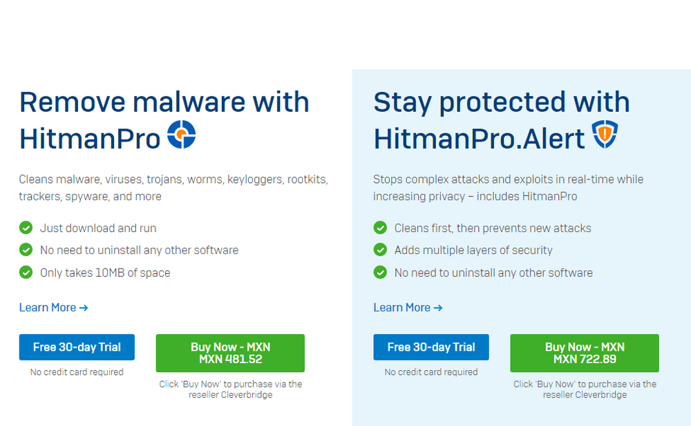 HitmanPro Advanced Malware Removal Tools Stay protected with HitmanPro.Alert Stops complex attacks and exploits in real-time while increasing privacy - includes HitmanPro Cleans first, then prevents new attacks Adds multiple layers of security No need to uninstall any other software
