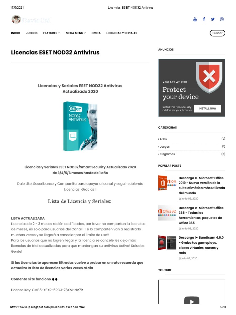 Licencia eset nod32 antivirus 12 hasta 2020